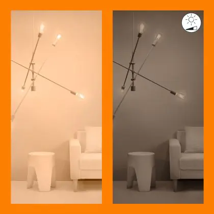 Die E27 LED-Lampe von WiZ hat 2200K - 5000K Tunable White als Farbtemperatur. Als Faustregel gilt: Je niedriger der Kelvinwert, desto gemütlicher wirkt das Licht.
