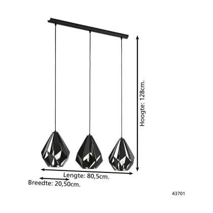 Die Eglo Pendelleuchte Carlton 5 Stahl Schwarz | IP20 - Geeignet für 3x E27 sorgt für eine angenehme Ausleuchtung und punktet durch modernes Design. Diese Leuchte ist speziell zur Montage an der Decke vorgesehen.