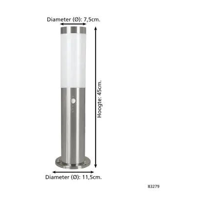 Beschreibung Eglo Sockellampe Helsinki Rostfreier Stahl | IP44 - Geeignet für 1x E27 - Bewegungssensor