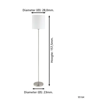 Beschreibung Eglo Stehlampe Pasteri Stahl Satin-Nickel Weiß | IP20 - Geeignet für 1x E27