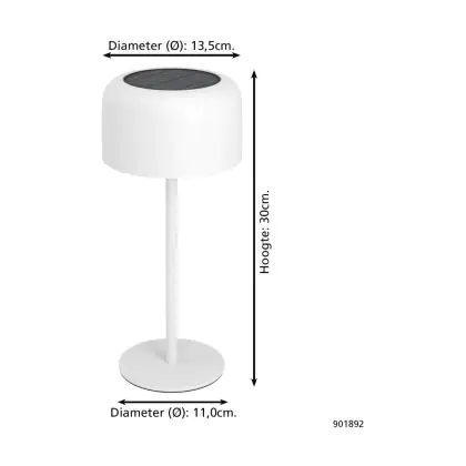 Die Eglo Tischlampe Roccanova Stahl Weiß 2W 270lm - 830 Warmweiß | IP44 - Touch Dimmbar - USB-C ist eine moderne LED-Solarleuchte, welche Licht in der Farbtemperatur ausstrahlt und mit einer langen Lebensdauer punktet. Die Leuchte benötigt keinen Strom, stattdessen wird die Energie der Sonne genutzt.