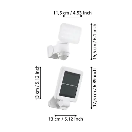 Die Eglo Wandleuchte Casabas Weiß 5W 470lm - 865 Tageslichtweiß | IP44 ist eine moderne LED-Solarleuchte, welche Licht in der Farbtemperatur ausstrahlt und mit einer langen Lebensdauer punktet. Die Leuchte benötigt keinen Strom, stattdessen wird die Energie der Sonne genutzt.