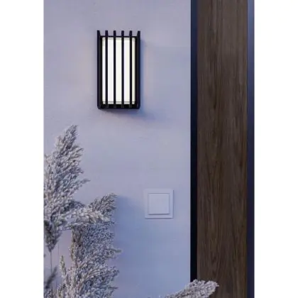 Beschreibung Eglo Wandleuchte Genovese Aluminium Schwarz 10W 1050lm - 865 Tageslichtweiß | IP65 - Bewegungssensor