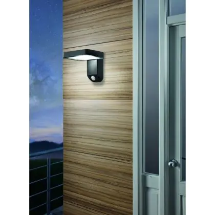 Die Eglo Wandleuchte Pastion Schwarz 4W 200lm - 830 Warmweiß | IP44 - Bewegungssensor ist eine moderne LED-Solarleuchte, welche Licht in der Farbtemperatur ausstrahlt und mit einer langen Lebensdauer punktet. Die Leuchte benötigt keinen Strom, stattdessen wird die Energie der Sonne genutzt.
