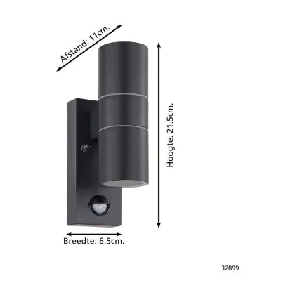 Beschreibung Eglo Wandleuchte Riga 5 Stahl Anthrazit 2W 250lm - 830 Warmweiß | IP44 - Bewegungssensor