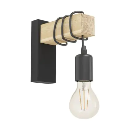 Eglo Wandleuchte Townshend Stahl Holz Schwarz Braun | IP20 - Geeignet für 1x E27