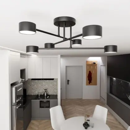 Die Farbe der Leuchte kann eine wichtige Rolle bei der Raumgestaltung spielen. Sie können sich für ein neutrales Weiß entscheiden oder eine dunklere Farbe wie Schwarz oder Silber wählen, um die Lichtquelle hervorzuheben oder sie sogar zu einem dekorativen Element für sich zu machen.