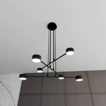 Die Emibig Pendelleuchte Modus Stahl Schwarz | Geeignet für 6x GX53 - Max 12W sorgt für eine angenehme Ausleuchtung und punktet durch modernes Design. Diese Leuchte ist speziell zur Montage an der Decke vorgesehen.