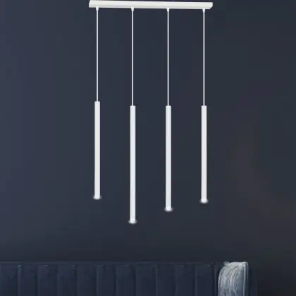 Die Emibig Pendelleuchte Selter Stahl Weiß | Geeignet für 4x G9 - Max 8W sorgt für eine angenehme Ausleuchtung und punktet durch modernes Design. Diese Leuchte ist speziell zur Montage an der Decke vorgesehen.