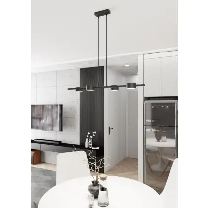 Die Emibig Pendelleuchte Sora Stahl Schwarz | Geeignet für 4x GX53 - Max 12W sorgt für eine angenehme Ausleuchtung und punktet durch modernes Design. Diese Leuchte ist speziell zur Montage an der Decke vorgesehen.