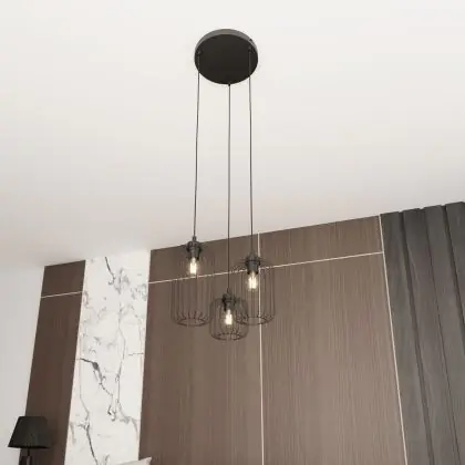 Die Emibig Pendelleuchte Vander Stahl Schwarz | Geeignet für 3x E27 - Max 15W sorgt für eine angenehme Ausleuchtung und punktet durch modernes Design. Diese Leuchte ist speziell zur Montage an der Decke vorgesehen.