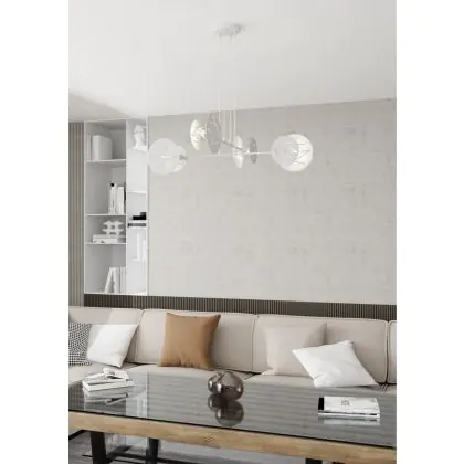 Die Emibig Pendelleuchte Xotic Stahl Weiß | Geeignet für 4x E27 - Max 15W sorgt für eine angenehme Ausleuchtung und punktet durch modernes Design. Diese Leuchte ist speziell zur Montage an der Decke vorgesehen.