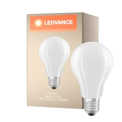 Die Ledvance Classic LED E27 Birne Fadenlampe Matt 17W 2452lm - 840 Kaltweiß | Ersatz für 150W ist eine effiziente E27 LED-Lampe mit Retrodesign und der perfekte Ersatz für Ihre konventionellen 150W Lampen mit E27. Zudem strahlt sie Licht in der Farbtemperatur 4000K - Kaltweiß aus und punktet durch eine lange Lebensdauer.