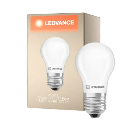 Die Ledvance Classic LED E27 Birne Matt 1.8W 250lm - 827 Extra Warmweiß | Ersatz Für 25W ist eine effiziente E27 LED-Lampe mit Retrodesign und der perfekte Ersatz für Ihre konventionellen 25W Lampen mit E27. Zudem strahlt sie Licht in der Farbtemperatur aus und punktet durch eine lange Lebensdauer.