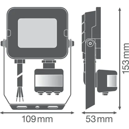 Beschreibung Ledvance LED-Scheinwerfer Kompakt Schwarz 10W 900lm 100D - 830 Warmweiß | IP65 - Symmetrisch - Bewegungs- und Lichtsensor
