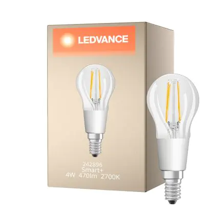 Die Ledvance Smart+ BT E14 Birne Fadenlampe 4W 470lm - 827 Extra Warmweiß | Dimmbar - Ersatz für 40W ist eine effiziente E14 LED-Lampe mit Retrodesign und der perfekte Ersatz für Ihre konventionellen 40W Lampen mit E14. Zudem strahlt sie Licht in der Farbtemperatur 2700K - Extra Warmweiß aus und punktet durch eine lange Lebensdauer.