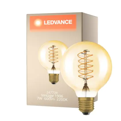 Aufgrund des geringen Energieverbrauchs von nur 7W sparen Sie mit der Vintage LED-Lampe von Ledvance bis zu 90 % Ihrer Energie - sowie Instandhaltungskosten gegenüber einer klassischen Glühbirne.
