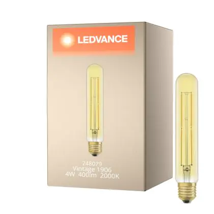 Die Ledvance Vintage 1906 LED E27 Röhre Gold 4W 400lm - 820 Extra Warmweiß | Ersatz für 35W ist eine effiziente E27 LED-Lampe mit Retrodesign und der perfekte Ersatz für Ihre konventionellen 35W Lampen mit E27. Zudem strahlt sie Licht in der Farbtemperatur 2000K - Extra Warmweiß aus und punktet durch eine lange Lebensdauer.