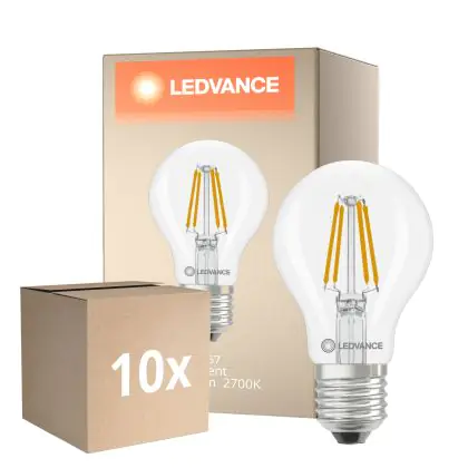 Die Mehrfachpackung 10x Ledvance Classic LED E27 Birne Fadenlampe Klar 3.4W 470lm - 827 Extra Warmweiß | Ersatz Für 40W ist eine effiziente E27 LED-Lampe mit Retrodesign und der perfekte Ersatz für Ihre konventionellen 40W Lampen mit E27. Zudem strahlt sie Licht in der Farbtemperatur aus und punktet durch eine lange Lebensdauer.