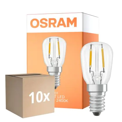 Die Mehrfachpackung 10x Osram Special T LED E14 Tubular Fadenlampe Klar 1.6W 70lm - 824 Extra Warmweiß | Ersatz Für 5W ist eine effiziente E14 LED-Lampe mit Retrodesign und der perfekte Ersatz für Ihre konventionellen 5W Lampen mit E14. Zudem strahlt sie Licht in der Farbtemperatur 2400K - Extra Warmweiß aus und punktet durch eine lange Lebensdauer.