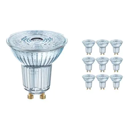 Die Mehrfachpackung 10x Osram SUPERIOR LED-Spot Reflektor GU10 PAR16 3.4W 230lm 36D - 930 Warmweiß | Höchste Farbwiedergabe - Dimmbar - Ersatz Für 35W ist eine effiziente GU10 LED-Lampe und der perfekte Ersatz für Ihre konventionelle Halogenlampe mit 35W und einem GU10-Sockel, bei welchem die zwei Stifte einen Abstand von 10 mm zueinander haben. Zudem strahlt das Produkt Licht in der Farbtemperatur 3000K - Warmweiß aus und punktet durch eine lange Lebensdauer.