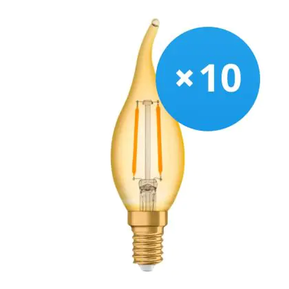 Beschreibung Mehrfachpackung 10x Osram Vintage 1906 LED E14 Kerze Gold 1.5W 120lm - 824 Extra Warmweiß | Ersatz Für 15W