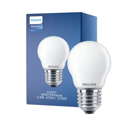 Die Mehrfachpackung 10x Philips Master Value LED Lustre E27 Kugel Matt 3.4W 470lm - 927 Extra Warmweiß | Höchste Farbwiedergabe - Dimmbar - Ersatz für 40W ist eine effiziente E27 LED-Lampe und der perfekte Ersatz für Ihre konventionellen 40W Lampen mit E27-Sockel. Zudem strahlt sie Licht in der Farbtemperatur 2700K - Extra Warmweiß aus und punktet durch eine lange Lebensdauer.