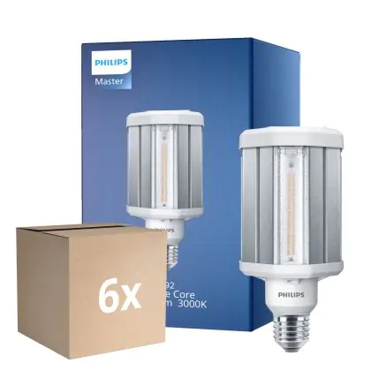 Die Mehrfachpackung 6x Philips TrueForce LED E27 HPL Klar 42W 5700lm 360D - 830 Warmweiß | Ersatz Für 125W ist eine effiziente HPL LED-Lampe und der perfekte Ersatz für Ihre konventionelle HPL-Gasentladungslampe. Zudem strahlt das Produkt Licht in der Farbtemperatur aus und punktet durch eine lange Lebensdauer.
