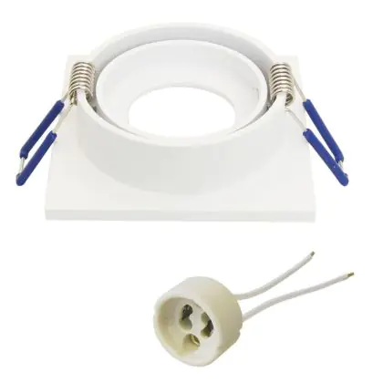Das Aluminiumgehäuse hat einen Gesamtdurchmesser von 80 mm und einen Ausschnitt von 70 mm, in dem das GU10-Leuchtmittel eingebaut werden kann. Die Fassung verfügt über eine Einbautiefe von 75 mm. Das Produkt kann um bis zu 40° geschwenkt werden.