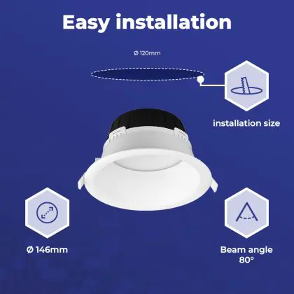Beschreibung Noxion LED Downlight Hera Tief Einbau Weiß 9W 900lm 80D - 827-830-840 CCT | 146mm - Ausschnitt 120mm