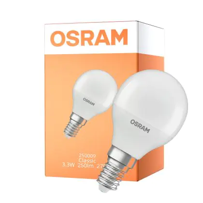 Die Osram Classic LED E14 Kugel Matt 3.3W 250lm - 827 Extra Warmweiß | Ersatz Für 25W ist eine effiziente E14 LED-Lampe und der perfekte Ersatz für Ihre konventionellen 25W Lampen mit E14-Sockel. Zudem strahlt sie Licht in der Farbtemperatur 2700K - Extra Warmweiß aus und punktet durch eine lange Lebensdauer.