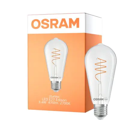 Die Osram Vintage 1906® LED Edison E27 Klar 3.4W 470lm - 827 Extra Warmweiß | Ersatz Für 40W ist eine effiziente E27 LED-Lampe mit Retrodesign und der perfekte Ersatz für Ihre konventionellen 40W Lampen mit E27. Zudem strahlt sie Licht in der Farbtemperatur 2700K - Extra Warmweiß aus und punktet durch eine lange Lebensdauer.