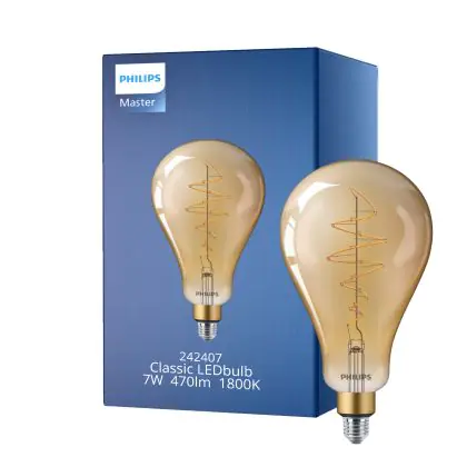 Die Philips Classic LED Glühbirne E27 Birne Gold 7W 470lm - 818 Extra Warmweiß | Dimmbar - Ersatz für 40W ist eine effiziente E27 LED-Lampe und der perfekte Ersatz für Ihre konventionellen 40W Lampen mit E27-Sockel. Zudem strahlt sie Licht in der Farbtemperatur 1800K - Extra Warmweiß aus und punktet durch eine lange Lebensdauer.