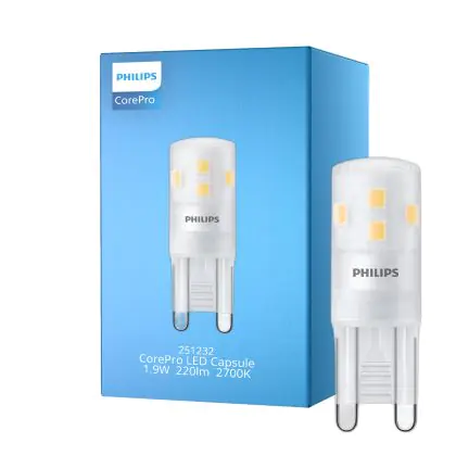 Die Philips CorePro LED Capsule G9 Matt 1.9W 220lm - 827 Extra Warmweiß | Ersatz Für 25W ist eine effiziente G9 LED-Lampe und der perfekte Ersatz für Ihre konventionelle Halogenlampe mit W und einem G9-Sockel. Die Stifte haben einen Abstand von 9 mm. Zudem strahlt das Produkt Licht in der Farbtemperatur 2700K - Extra Warmweiß aus und punktet durch eine lange Lebensdauer.