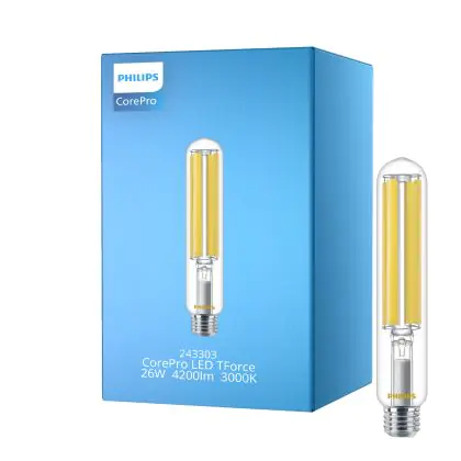 Die Philips CorePro LED TForce E27 26W 4200lm - 730 Warmweiß ist eine effiziente LED-Gasentladungslampe und der perfekte Ersatz für Ihre konventionelle Gasentladungslampe. Zudem strahlt das Produkt Licht in der Farbtemperatur 3000K - Warmweiß aus und punktet durch eine lange Lebensdauer.